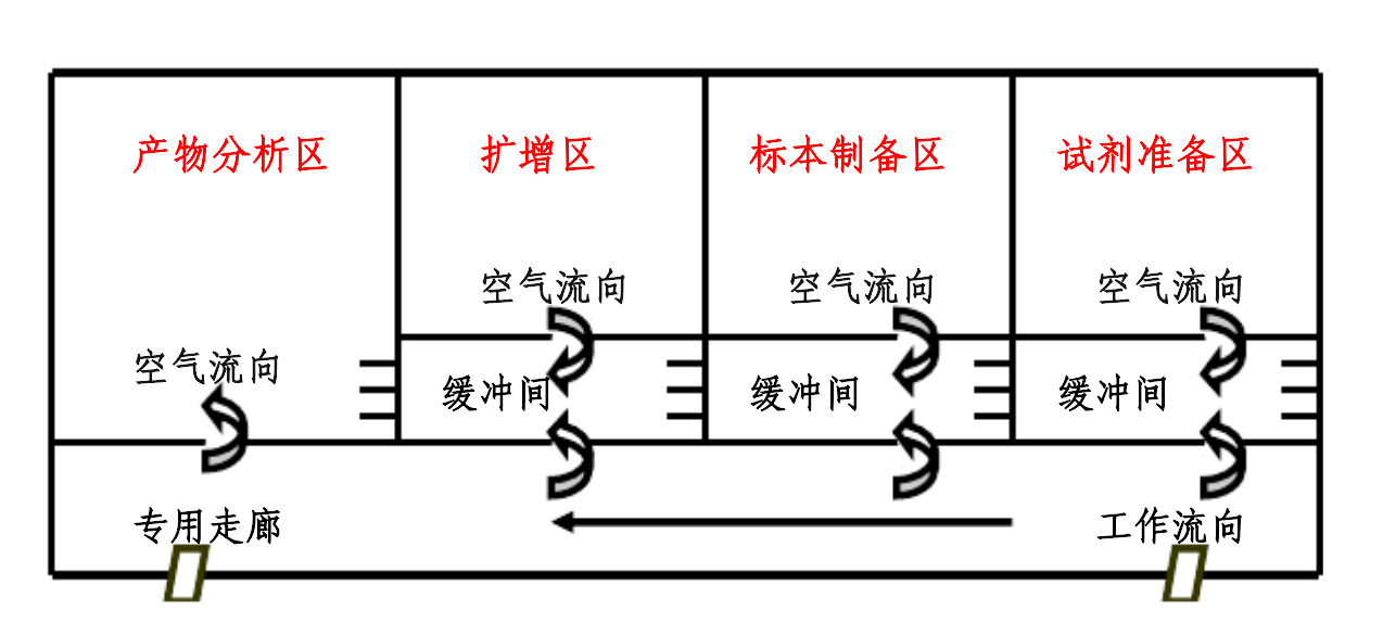 PCR潔凈實(shí)驗(yàn)室的規(guī)劃布局: