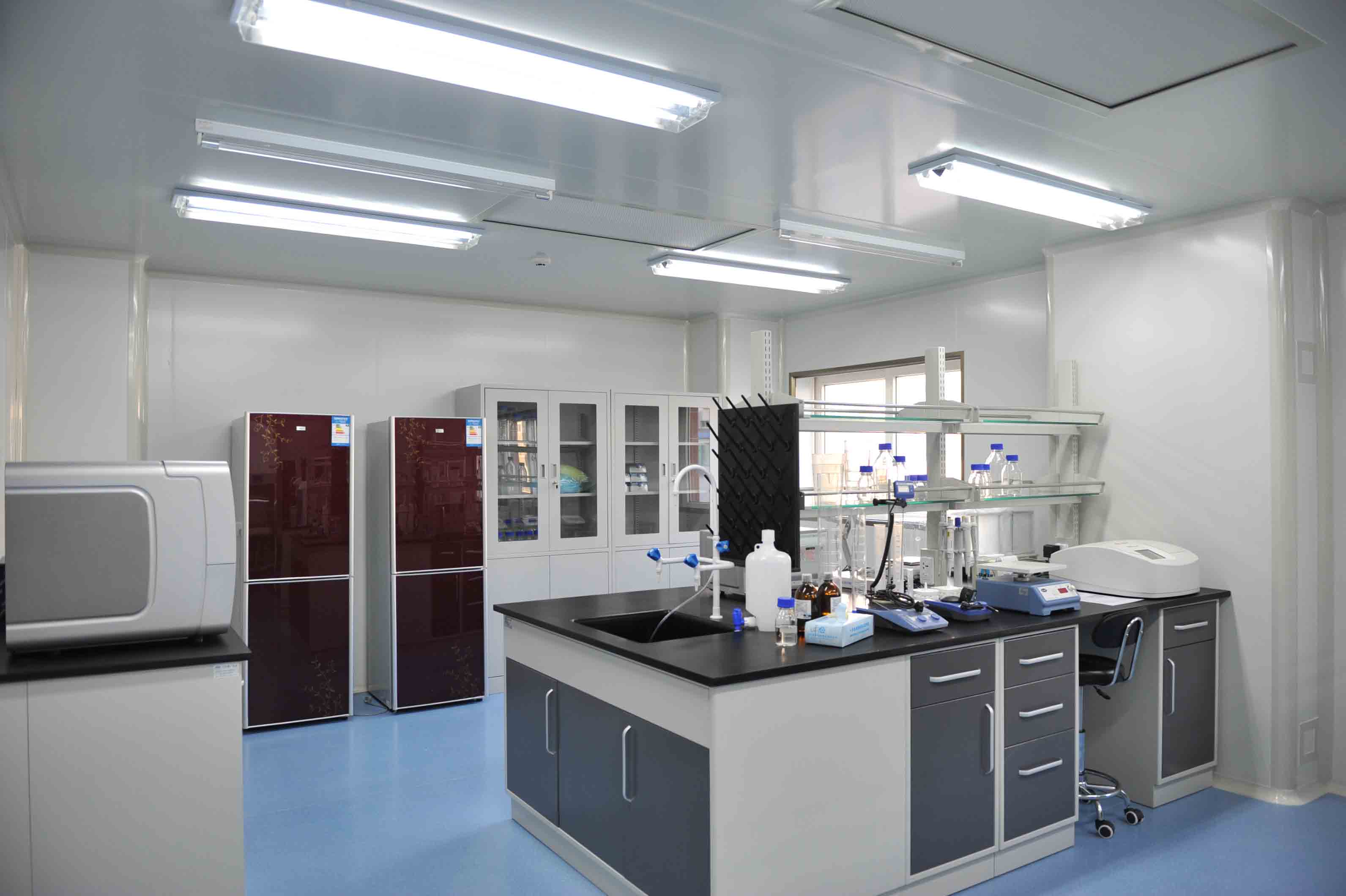 2、實驗室裝修設(shè)計內(nèi)柜箱體-木質(zhì)基材采用優(yōu)質(zhì)環(huán)保型E1級中密度板,厚15mm,雙面粘壓三聚氰胺板,所有板材截面PVC熱熔膠防水封邊處理,配模具成型特制PVC暗拉手.安裝國標通用型CCC名牌產(chǎn)品電源控制系統(tǒng)